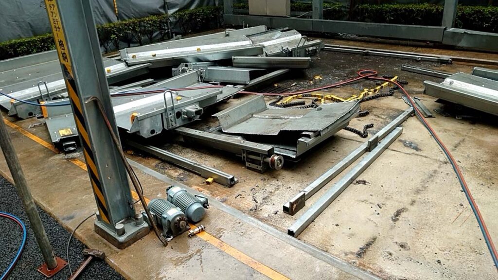 東京都世田谷区で、住宅が密集する環境の中、鉄骨造の機械式立体駐車場を安全に解体しました。(狭小地・近隣配慮対応)